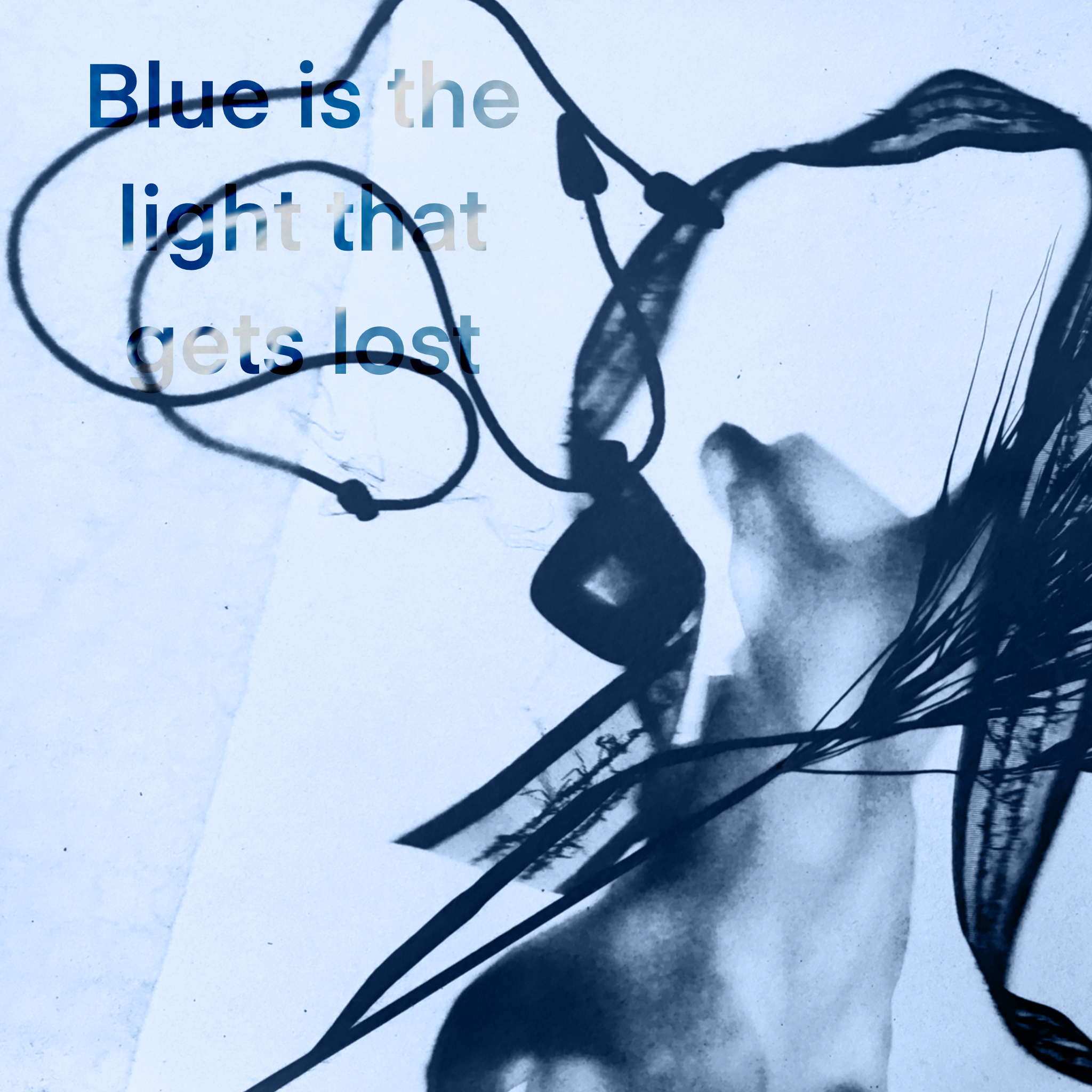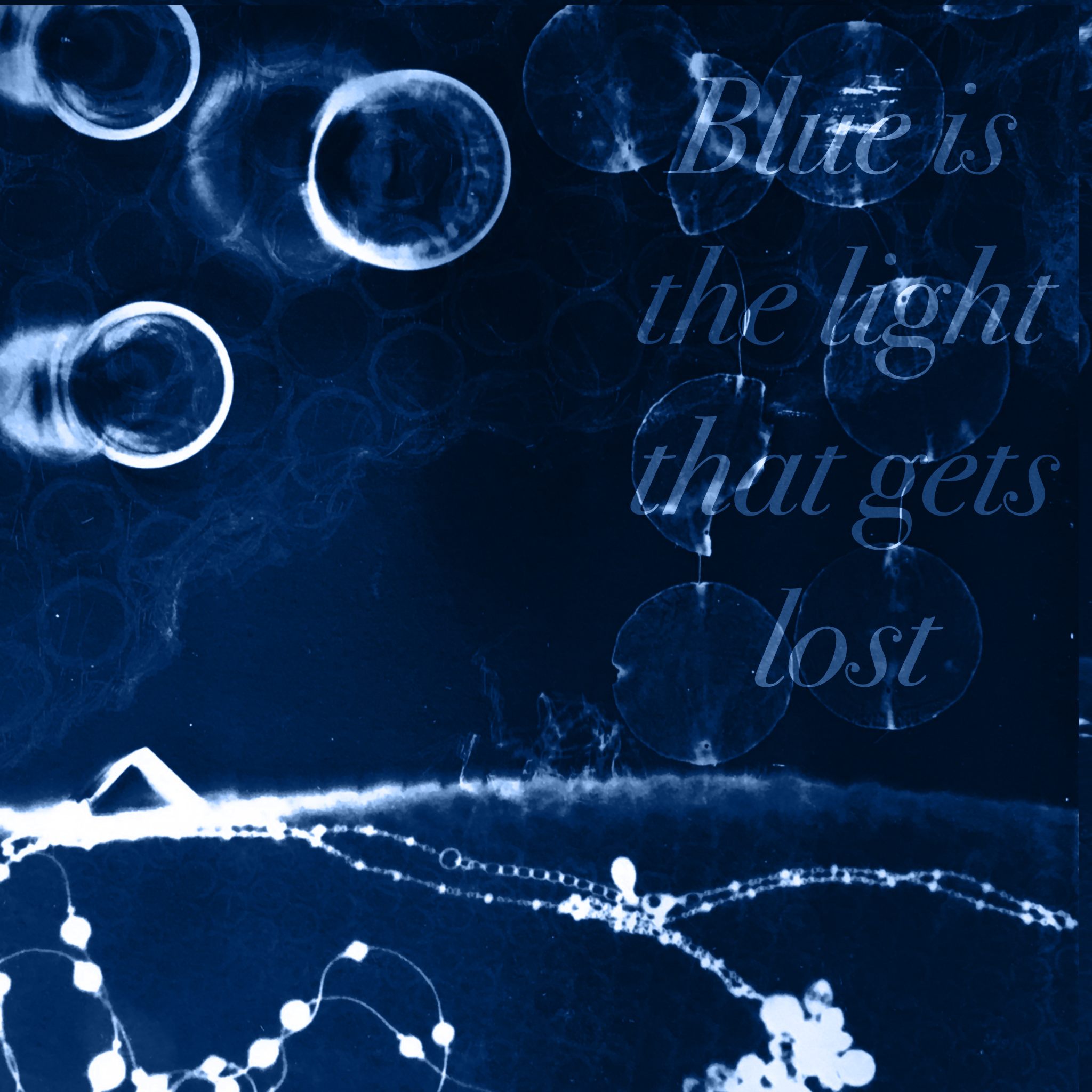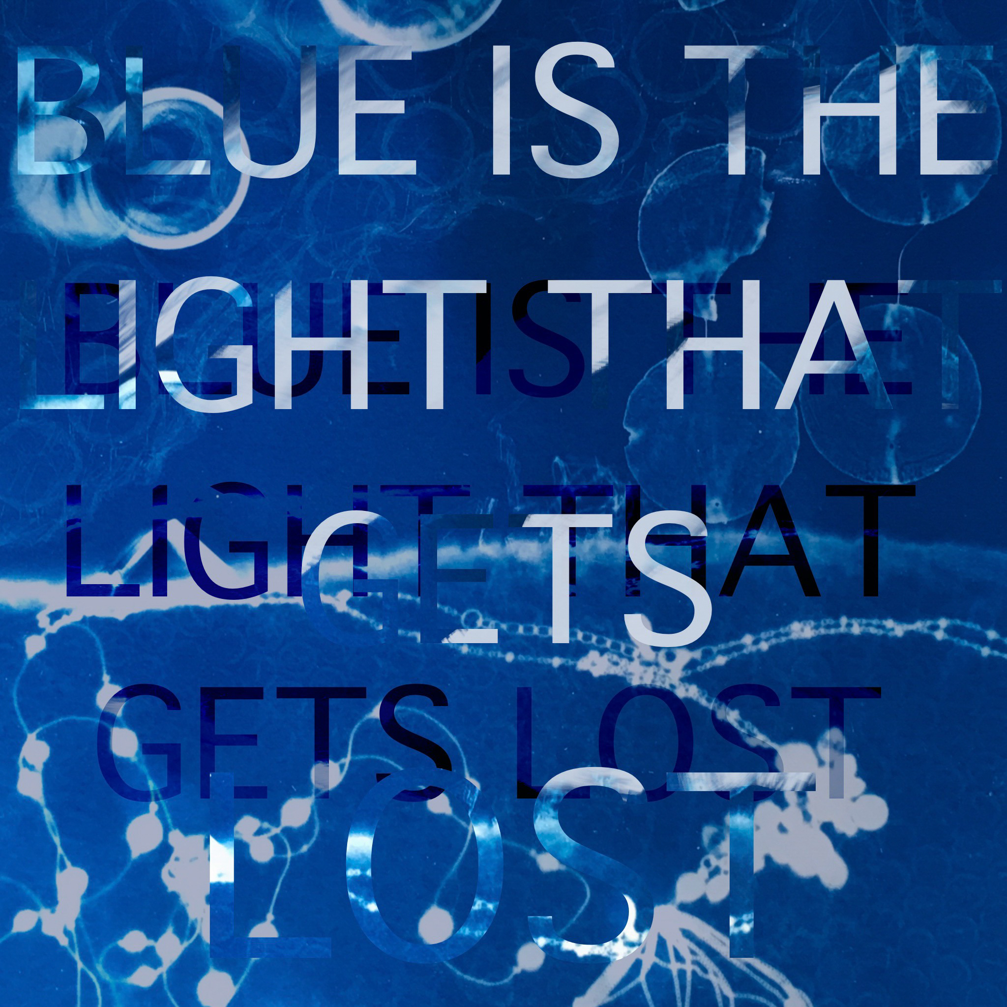 - I then cropped the image to square in different ways and overlaid a much shorter version of ‘Blue is the light that gets lost’. Of these I like the darker more dramatic image with its glistening light and the text that gets lost.